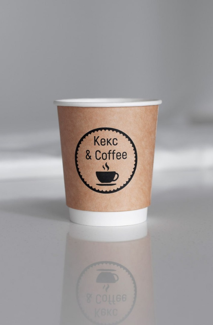 Крафт-стакан (двухслойный с коричневым наружным слоем) стоит столько же, сколько белый двухслойный — цена в прайсе единая для обеих вариаций. Разница в другом: на крафтовом фоне цвета печати воспринимаются иначе.